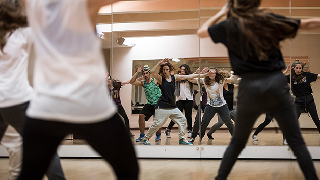 Eine Gruppe von Tänzern und Tänzerinnen stellt sich vor den großen Spiegeln im Tanzsaal auf. Als die Musik einsetzt, finden ihre Hip-Hop-Moves mühelos in den Rhythmus. Wie kann man so präzise tanzen, ohne die Musik zu hören?